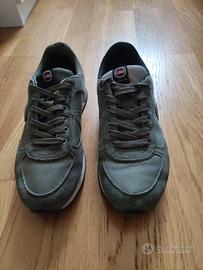 Due scarpe Colmar verdi numero 42 , una in camoscio e tela , una in camoscio e pelle .