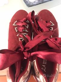 Scarpe comode con zeppa in tessuto plastificato lavabile colore bordeaux numero 36