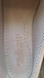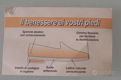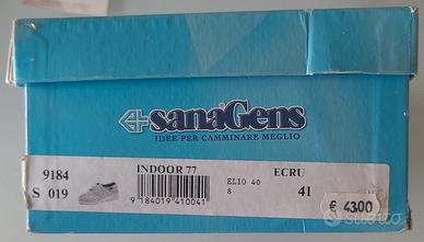 Scarpe sanaGens con plantare morbido "passoflex" in lattice naturale ammortizzante che stimola la circolazione; rivestita in vera pelle. Tomaia in tessuto traspirante. Suola in gomma antiscivolo e flessibile per facilitare la deambulazione. colore Ecru n.41 - altezza tacco 3 cm. Chiusura a strappo.Usate pochissime volte, come nuove, nessuna imperfezione.Scatola originale in ottimo stato