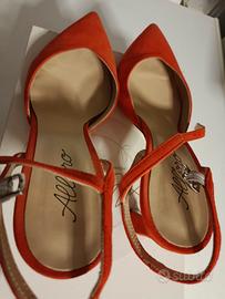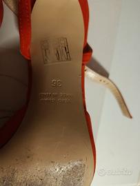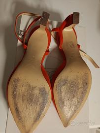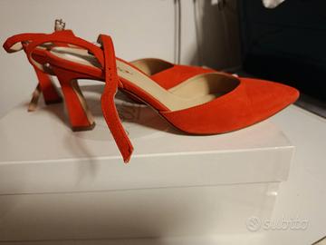 vendo scarpe con cinturino di camoscio colore arancione con tacco in ottimo stato