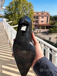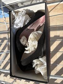 Scarpe con i tacchi camoscio nero, taglia 37, condizioni come da foto, usate raramente causa il mio alluce valgo, ancora con imballaggio originale. Per qualsiasi informazione scrivete pure !