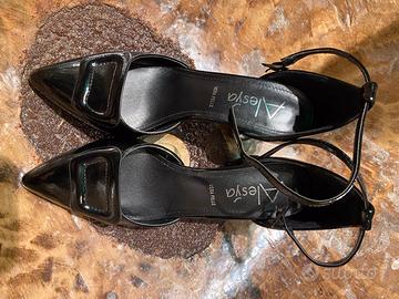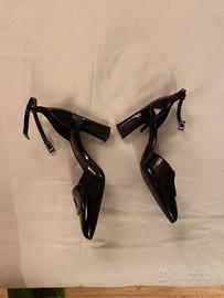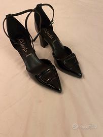 Scarpe eleganti Nere lucido Alesya. Vera Pelle Tacco 9 cm. Made in Italy. N. 39 usate 2 ore, praticamente nuove. Cinturino da legare alla caviglia
