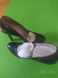 Scarpe in pella nere con il tacco, vernice nera, numero 37. Mai usate e tenute sempre dentro la scatola.