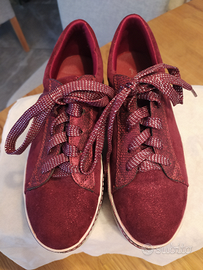 Scarpe sfiziose, n 38 con plateau 6 cm, rosso bordo' laminato.