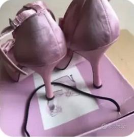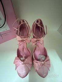 Leg Avenue, Scarpa con cinturino alla caviglia in raso con fiocco Rosa(rosa |UK 10 - 40 EU) Nuove di zecca Leg Avenue|4.5 Satin Ankle Strap Shoe With Bow |Rosy Pink|UK 10| Brand New|