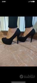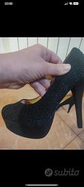 Scarpe nere con tacco alto effetto pizzo. Vendo perché sono troppo alte per me. Usate una sola volta. Numero 38