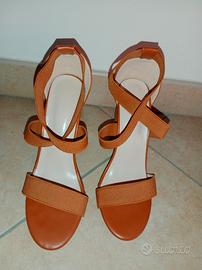 sandalo aperto con tacco alto numero 39 colore marrone chiaro con cinturini elasticizzato mai indossati in ottime condizioni