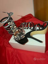 Sandali con tacco alto sexy alla moda europea e americana con punta affilata, decorati con strass, tacchi a spillo, design con cinturino a serpentina, decorati con farfalle, sandali da festa e da sera per San Valentino