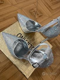 Scarpe con tacco argentate 12 cm perfette per una serata da matrimonio..battesimo ecc