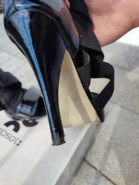 vendo scarpe con tacco usate un paio di volte ma in buono stato, con qualche spelatura sui tacchi come da foto, con cinghie elastiche davanti