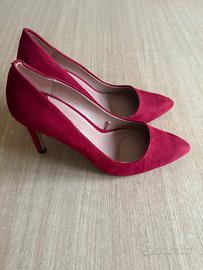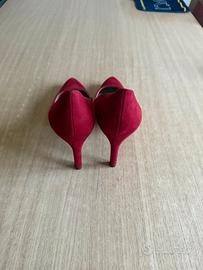 Vendo scarpe con tacco alto da donna Dorothy Flex color rosso scarlatta décolleté in pelle scamosciata, in camoscio interno alla suola, la scritta Stradivarius della marca Michael Kors. Taglia: 39;
