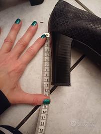Scarpe con tacco in pelle di serpente con suola di gomma, made in Italy. Numero 37. Marca Donna Katrine. Tacco squadrato alto 10.5. In ottime condizioni