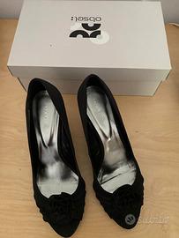 Vendo scarpe donna, colore nero, eleganti con tacco, punta aperta.