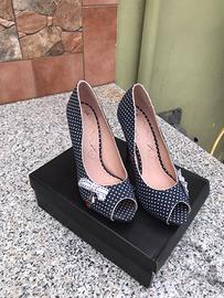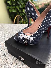 scarpe con tacco Fiorucci misura 40 vendo per inutilizzo. Difetto: graffio nel plateau parte bassa davanti, considerato che va a terra indossate non si vede assolutamete. Fiorucci pagate 175,00 euro, vendo per 35,00 euro poco trattabile