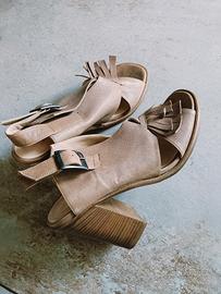 scarpe in pelle con unta aperta, cinturino e tacco largo alto 11cm