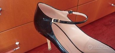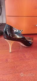 Scarpe con tacco in cuoio e vernice nera firmate Giuseppe Zanotti design in ottime condizioni in confezione originale. Prezzo originale €315.