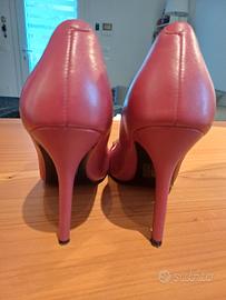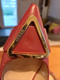 scarpe con tacco bordeaux, con fibbia in metallo con scritta guess.taglia 37,5