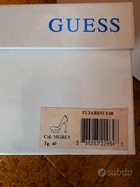 Scarpe Guess grigie in camoscio, numero 40. Tacco 12 cm Plateau 3 cm Sono state utilizzate ma sono ancora in buone condizioni, ben tenute e comode da indossare. Modello con plateau, quindi risultano più comode nonostante il tacco, oltre ad essere molto carine e versatili. Vendo complete di scatola originale e tacchetti di ricambio. Presentano normali segni d’uso dove poggiano le dita, sopra dove tocca il tallone e come normale che sia, nella suola esterna.