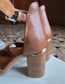 Scarpe con tacco alto doppio comodo e stabile con chiusura a cinturini anteriore. Sono in ottime condizioni.