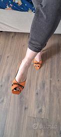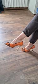 Scarpe con tacco 10 circa. Color arancione, nuove senza cartellino. Mai usate misura 41