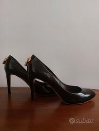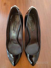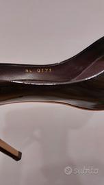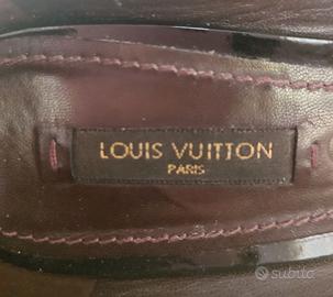 Decolletè Louis Vuitton in pelle di vitello verniciata colore amaranto (bordeaux molto scuro). Altezza tacco 10 cm. Taglia 39. Dettaglio: iconico lucchetto in metallo dorato posizionato sul tallone. Manutenzione: spolverare con panno chiaro asciutto. Dotate di box, e dust bag in tessuto da usare per riporle quando non si usano o in viaggio. Indossate solo due volte. Nelle foto si vedono la box ed i dettagli che ne certificano l’autenticità compreso il codice identificativo interno (NL0171). Non si dispone di ricevuta in quanto andata smarrita (l’articolo è vintage originale). Disponibile ad inviare in chat di “Subito” ulteriori foto, anche delle custodie in tessuto di cui sono dotate.