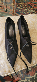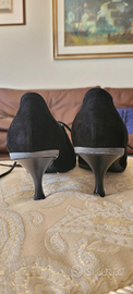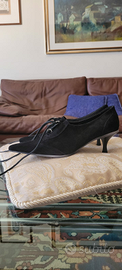 Scarpe con stringhe, tacco a rocchetto, in camoscio, colore nero, numero 37.