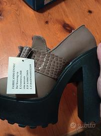 Buone condizioni, mai usate con cartellino incluso, taglia 36, tacco 12. Scarpe con fiocco dal design particolare e accattivante. Sfortunamente sono presenti delle lesioni sulla lingua delle scarpe.