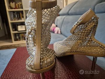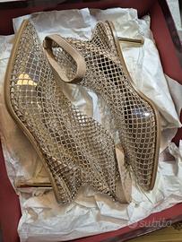 Mackie, stivaletto di cristallo a rete, effetto nude,oro, regalate praticamente mai usate