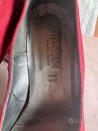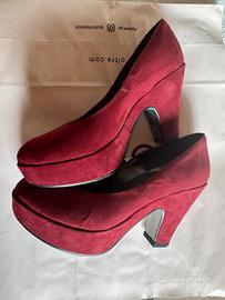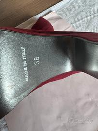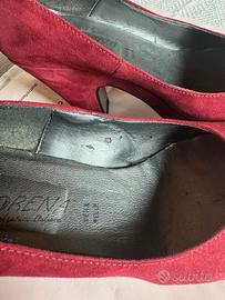 Rosso scuro in pelle scamosciata. Usate solo ad una cerimonia. Piccolo difetto nell’ultima foto. Taglia 38 comprate da Pittarosso Prediligo spedizione