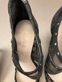 Vendo scarpe con tacco bello solido, borchiate, elegantemente aggressive, open toe. Dita del piede a vista ma caviglia velata Molto carine