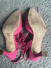 Scarpe con tacco medio, fuscsia, lacci lunghi. Numero 38 in vera pelle