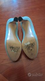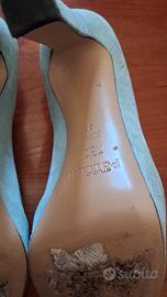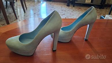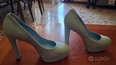 Eleganti scarpe con tacco firmate Studio Pollini. Dettagli del prodotto: Marca: Studio Pollini. Taglia: 37. Materiale: camoscio e vero cuoio. Colore: verde acqua chiaro. Produzione: Made in Italy. Condizioni: Le scarpe sono in condizioni discrete. Il camoscio è leggermente scolorito ma la struttura della scarpa è solida. Presentano lievi segni di utilizzo tipici del materiale (visibili in foto sulla punta e internamente), che non ne compromettono l'eleganza una volta indossate. #Pollini #StudioPollini #MadeInItaly #Decollete #ScarpeDonna #Suede #Camoscio #LuxuryShoes #VintedItalia #FashionItaly #Taglia37