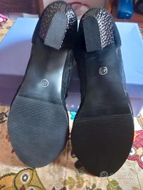 scarpe con tacco n .40 scamosciate aperte davanti con pizzo e chiusura a cerniera dietro .9