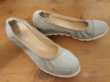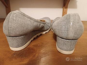 Scarpe modello simile ad una ballerina ma con tacco 4 cm. Stoffa morbida e lucida, con punta plastificata. Numero 37