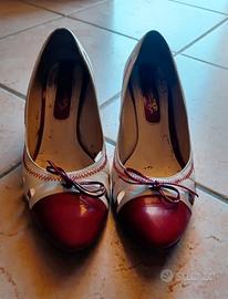 Scarpe con tacco, usate ma in buone condizioni. Sono di colore rosso e bianco, numero 40. - Tomaia in pelle. Ritiro a Bologna.
