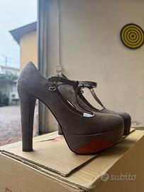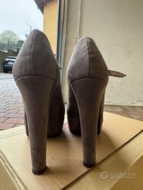 Scarpe con tacco e plateau in pelle scamosciata con inserto arancione
