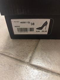 Décolleté usate 2 volte. Sono praticamente nuove sé non per la suola parte davanti da normale brevissima usura, lavabile e serenamente trattabile a nuovo. Nere, brillantinate su tutta la scarpa. Molto belle, eleganti e comode da utilizzare. Nr 38 , prima donna.