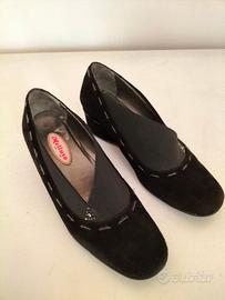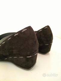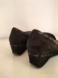 Scarpe scamosciate indossate poche volte. Zeppa bassa, alta circa 5 cm.