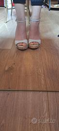 Scarpe beige in ecopelle con zeppa in sughero altezza 11cm. Numero scarpa 37.