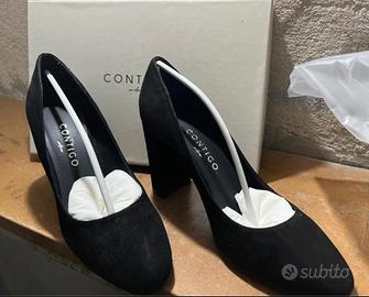 Vendo scarpe contigo décolleté camoscio nero con tacco, mai usate N.37