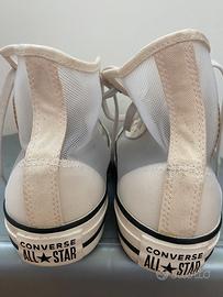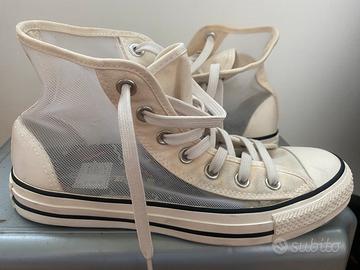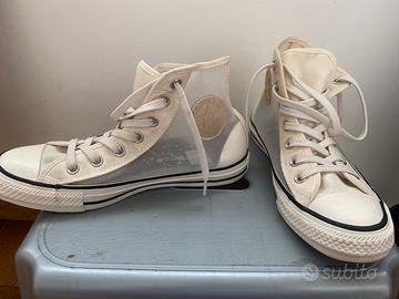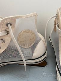 Scarpe Converse All Star alte in tela. - Colore beige e bianco. - Taglia 38.