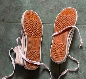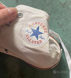 Iconiche scarpe Converse All Star in tela. - numero 39. - Modello alto. - Lacci bianchi. - Suola in gomma. - Logo Converse All Star sul lato.