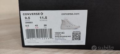 Scarpe Converse All Star Chuck Taylor in pelle, colore bianco misura 43, nuove con scatola originale.