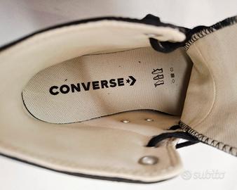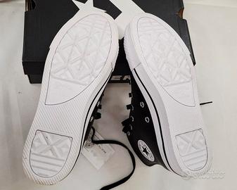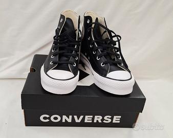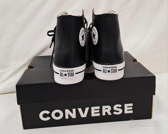 Scarpe Converse All Star in pelle nera con dettagli bianchi, numero 36, vendute complete di scatola originale. Perfette condizioni.