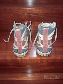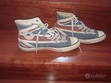 Scarpe All Star in tela, suola in gomma chiara. Design ispirato alla bandiera inglese