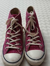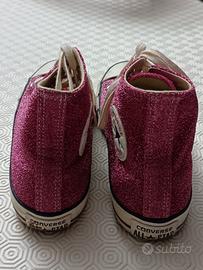 VENDO SCARPE MARCA CONVERSE ALL STARS DI COLORE FUCSIA BRILLANTINATE, NR. 38. EVENTUALE RITIRO IN ZONA MARCONI.