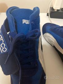 Scarpe Sparco Puma donna originali, mai usate, azzurre e blu con i sarti, pelle bianca e nera, numero 38