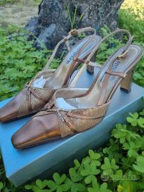 Scarpe eleganti n. 39, con scatola e borsetta con tracolla a catena dorata abbinata