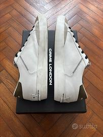 Vendo Scarpe Crime London Low Top Distressed da Uomo, Pelle Bianca e Scamoscino Marroncino/Beige con tallone in scamoscino Verde, Numero 44 (soletta interna 29 Cm), Indosaate un paio di volte e come si può vedere dalle foto in perfette condizioni. Comprensive di scatola originale. Spedizione velocissima. Per altre foto scrivetemi