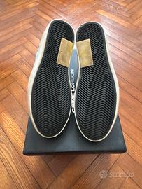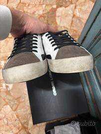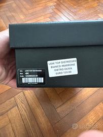Vendo Scarpe Crime London Low Top Distressed da Uomo, Pelle Bianca e Scamoscino Marrone con tallone in scamoscino Verde, Numero 44 (soletta interna 29 Cm), Indosaate un paio di volte e come si può vedere dalle foto in perfette condizioni. Comprensive di scatola originale. Spedizione velocissima. Per altre foro Scrivetemi